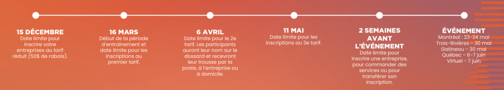 Vous êtes plusieurs responsables à avoir du matériel à transporter vers le site de l’événement. Nous suggérons fortement de venir installer votre kiosque entreprise la veille de votre Défi.